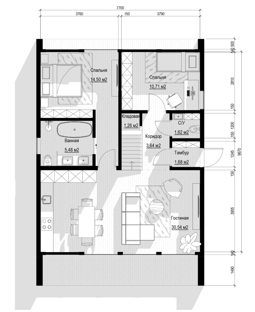 Технологичный клееный конструкционный брус и PIR утеплители являются максимально влагостойкими материалами. Под действием внешней среды они не будут деформироваться, а значит дом с течением времени сохранит точную геометрию формы. Продувания, промерзания и прочие негативные явления исключены.
